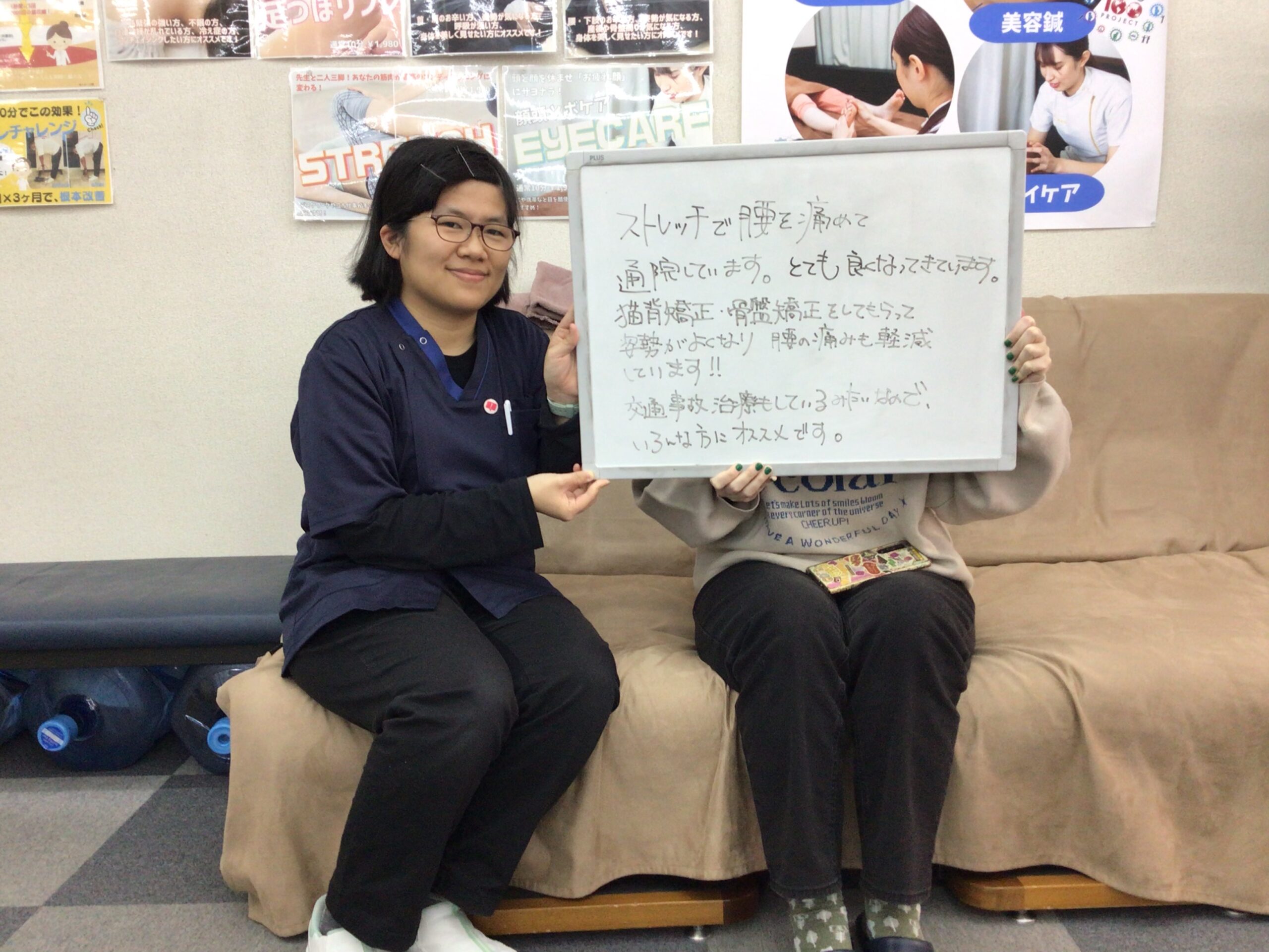 猫背矯正・骨盤矯正をしてもらって姿勢が良くなり、腰の痛みも軽減しています!!