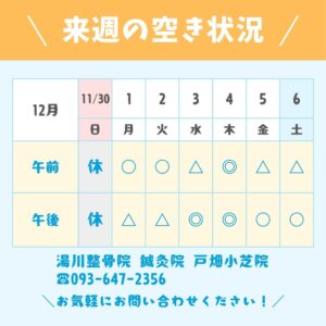 「初めてだけど、いつが空いているのかな?」「久しぶりに時間が出来たし、身体もきついから行きたいけどムリかな?」と思っている皆様!