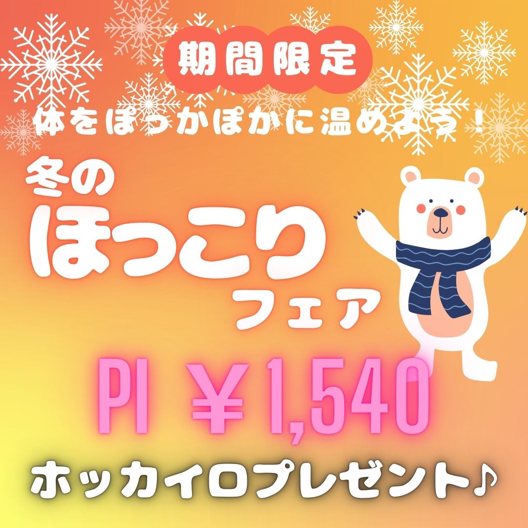 そこで、当院では【期間限定】で、冷え固まった筋肉を丁寧にほぐし、血流を促すことで、体の内側から温かさを感じて頂ける、「冬のほっこりフェア」を開催いたします!(^^)/