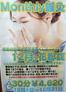 📅 12月のMonthly鍼灸(花粉症対策)のご案内