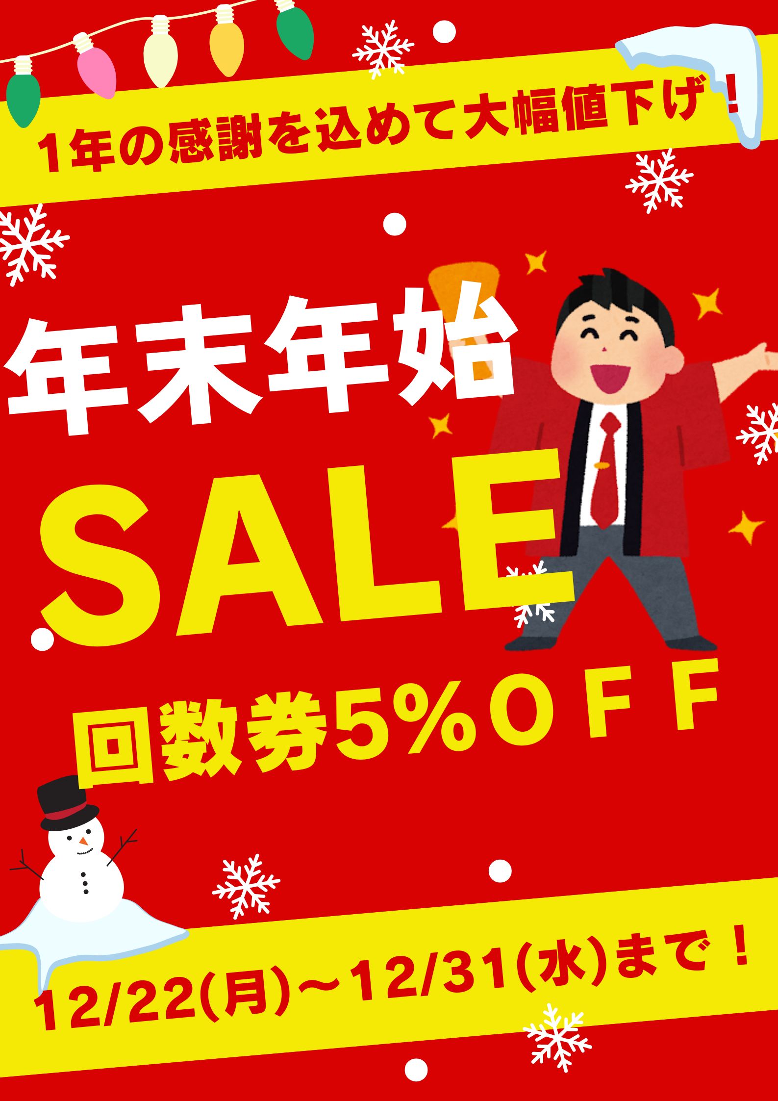 回数券が5%OFF!!(チケット回数によっては対象外あり)