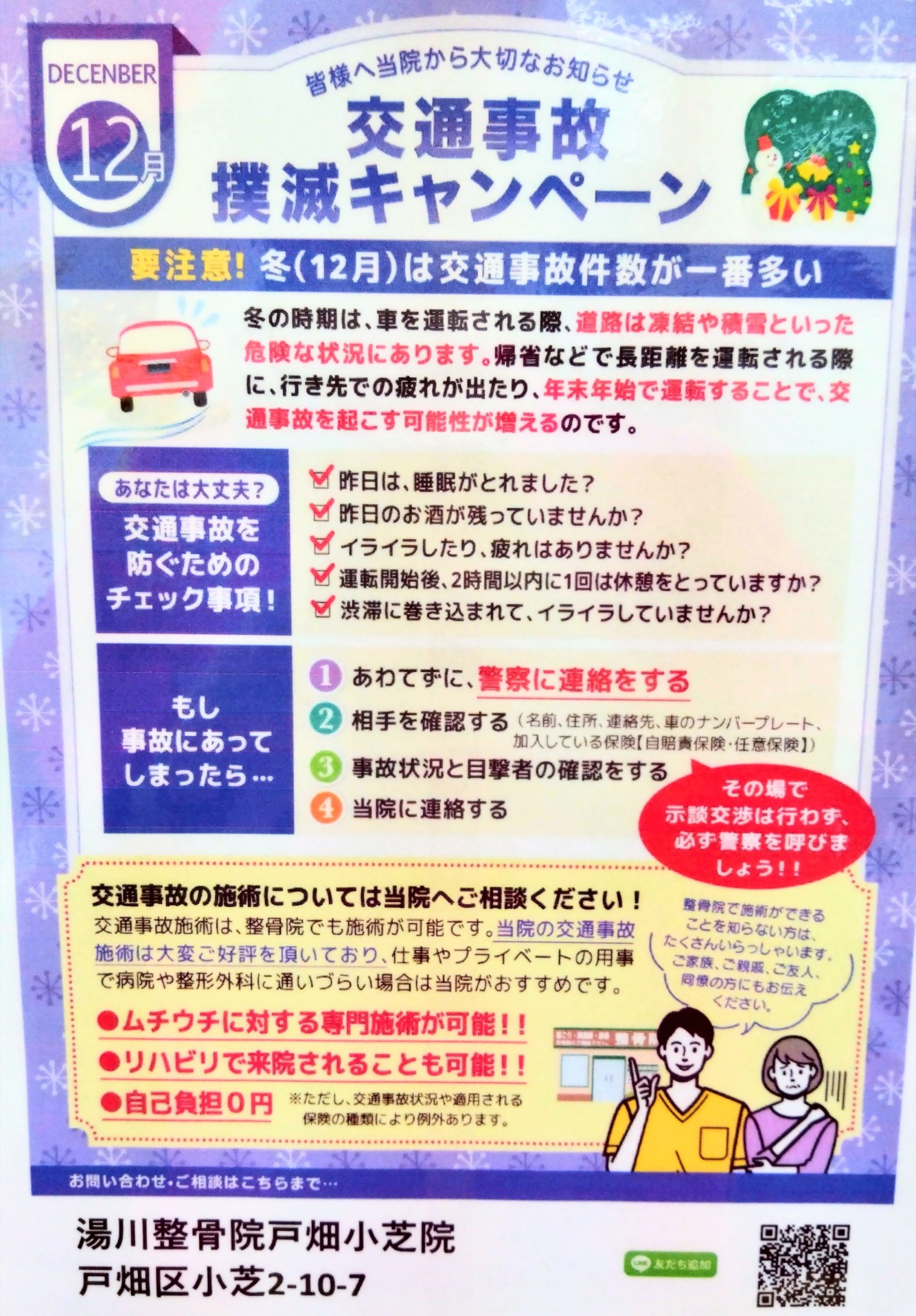 当院では交通事故の啓蒙活動を行うと共に、覚えておくといざという時に役に立つ情報をお届けしております!(‘ω’)ノ