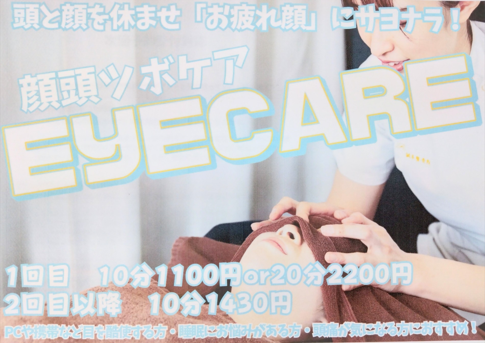 当院では、そんなお悩みに『顔頭ツボケア EYE CARE』がオススメです!