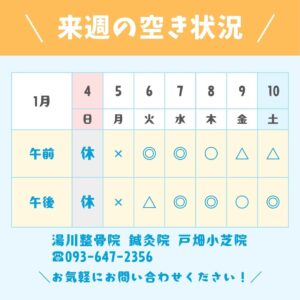 さて、今週のご予約の空き状況をお知らせ致します!